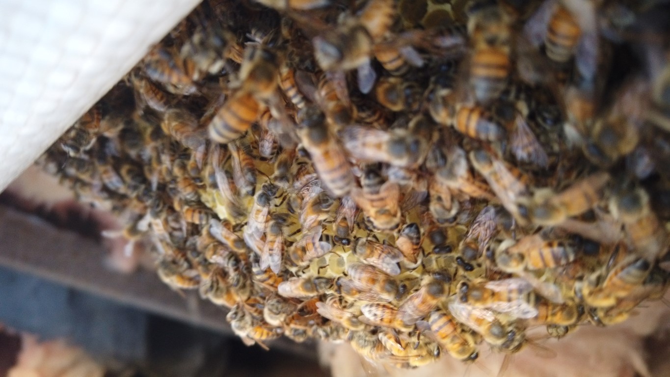 Removal: Once we agree on the services to be rendered which may range from a simple clipping of a branch to remove a recent swarm to removing an established hive from a location that requires much more effort to access, then we get to work. Even without established comb, swarms that have a larger size or are located on a building, or in the crook of several branches on a tree can take 2 or more hours to remove. More challenging removals generally take 3-6 hours and depending on the location and size of the hive even longer. At times work may be completed the next day or a future day. During removal of a hive with comb, we generally need to cut out or disassemble the area they have colonized in order to remove all comb (an important step). As we remove them we take care to identify comb with nectar and honey stores (the bees food storage), and brood (eggs, larvae, and baby bees). After work is completed, we then generally repair and seal the area. We also exclude the original entry point or points. Every situation is different.